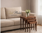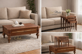 این ست شامل یک جلومبلی کشودار و سه عسلی تو در تو است که علاوه بر زیبایی، فضای مناسبی برای نگهداری وسایل پذیرایی فراهم میکند. طراحی پایههای خراطی شده و رنگ گرم چوبی، باعث میشود این محصول به راحتی با انواع مبلمان راحتی و کلاسیک ست شود.