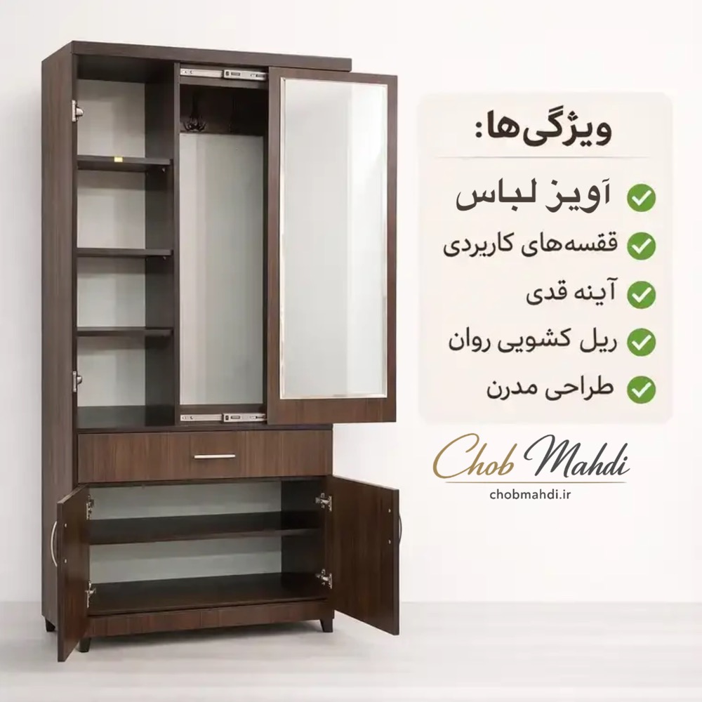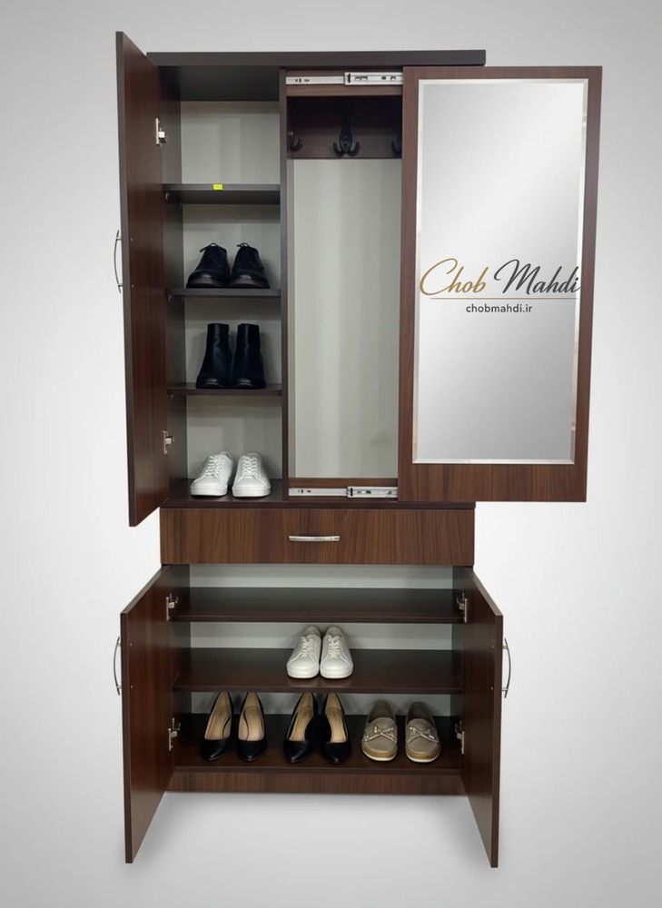 جاکفشی ایستاده مدل المیرا شامل آویز لباس داخلی و جای کفش با طبقه بندی داخلی فضای ذخیره سازی حدود 32 جفت کفش