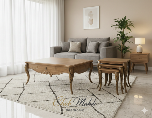 میز جلومبلی و عسلی مدل پیچک رنگ بلوطی